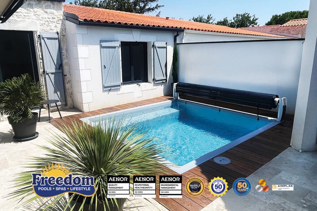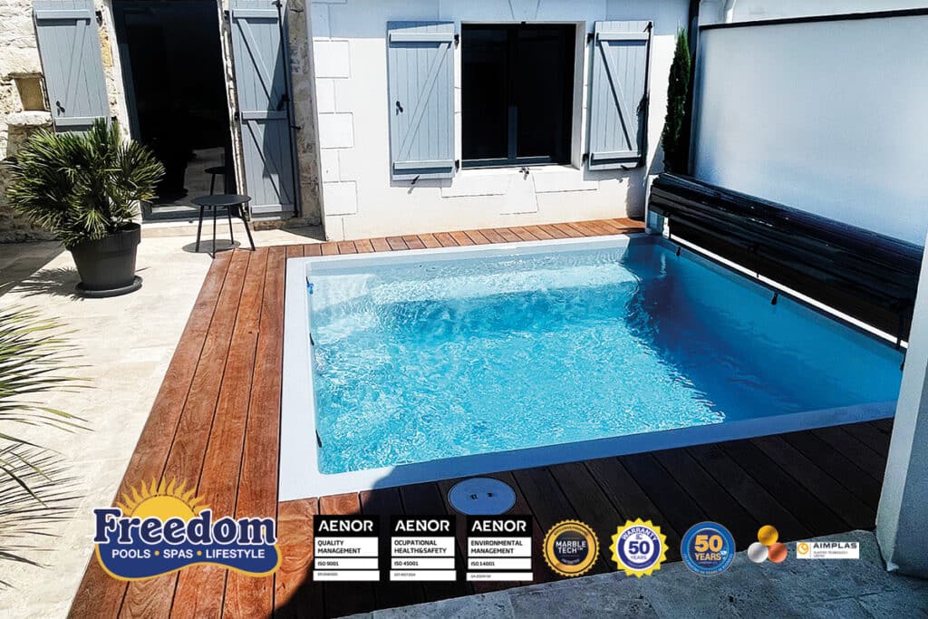 Une piscine carrée idéale pour une baignade agréable. Parfaite pour les projets architecturaux sur les terrasses, les toits-terrasses et les penthouses.