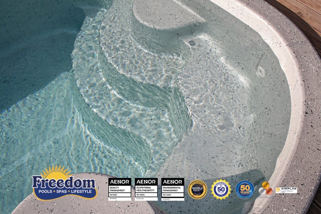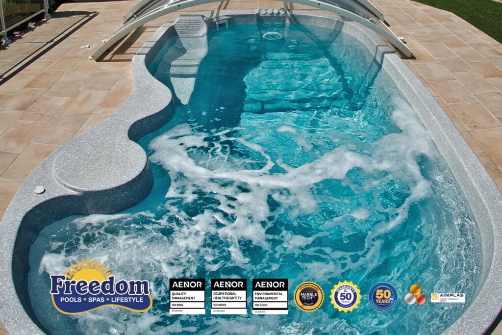 Compact et élégant, avec table intégrée, chaise longue d’hydromassage, jets de spa et nage à contre-courant. Conçu pour optimiser l’espace dans les petits jardins.